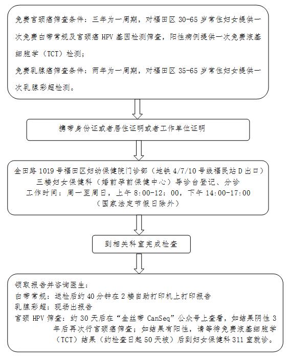 免费筛查周期:宫颈癌筛查为三年一周期,乳腺癌筛查为两年一周期