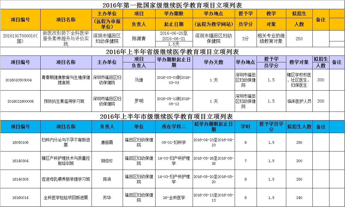 2016年继教班立项汇总