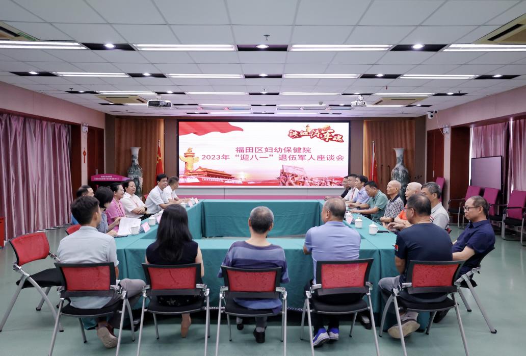 为庆祝中国人民解放军建军96周年,进一步弘扬医院拥军优属光荣传统,2023年7月31日上午,福田区妇幼保健院召开“迎八一”退伍军人座谈会,院党委成员及退役军人们欢聚一堂,畅谈军旅生涯、共话医院发展。