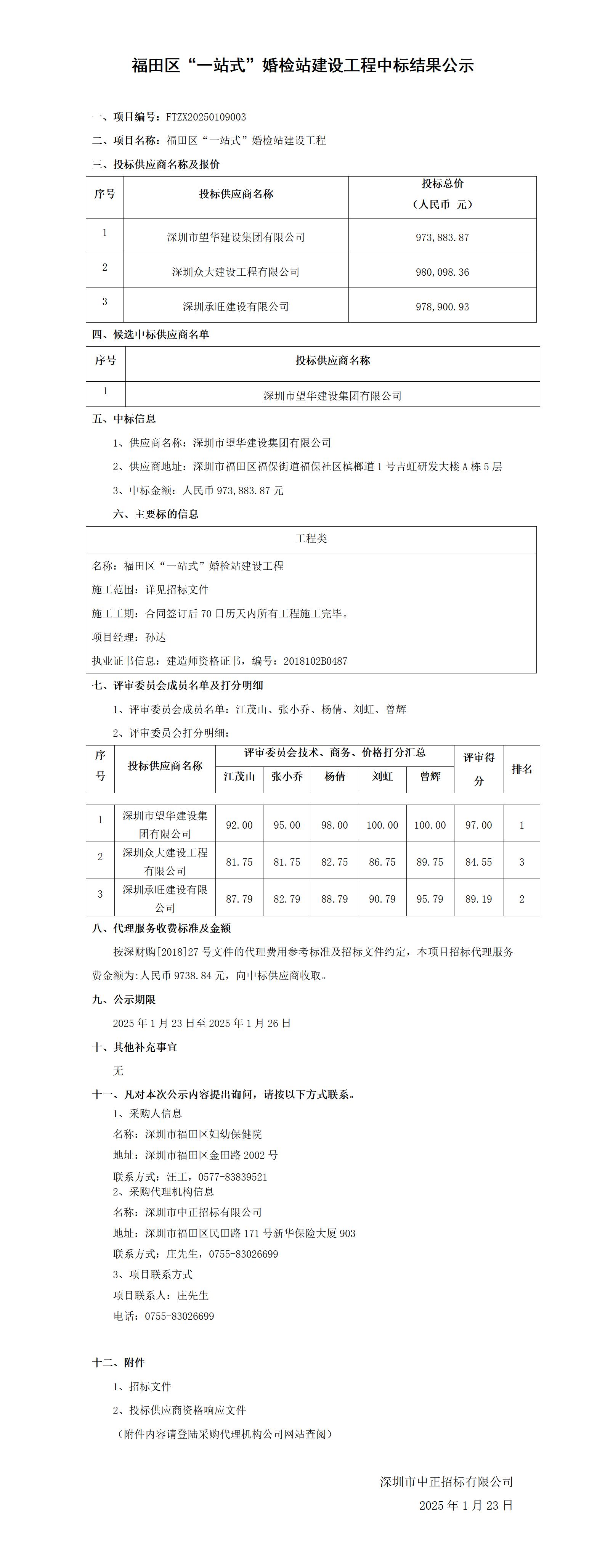 福田区“一站式”婚检站建设工程中标结果公示