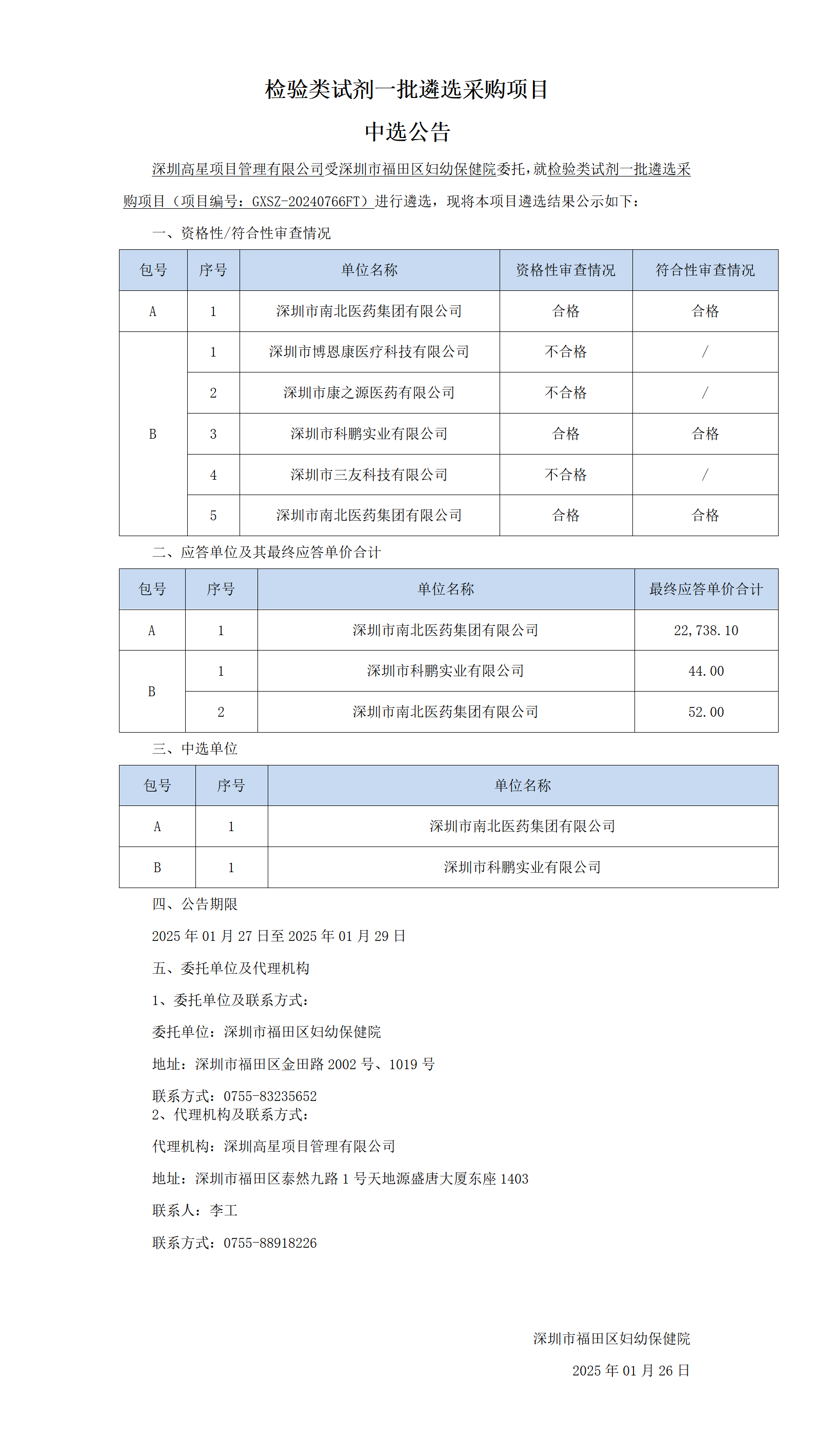 检验类试剂一批遴选采购项目中选公告