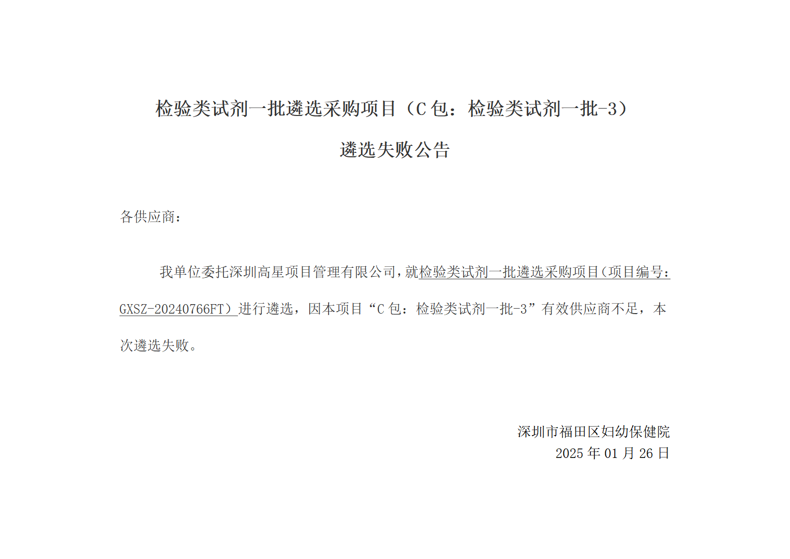 检验类试剂一批遴选采购项目(C包:检验类试剂一批-3)遴选失败公告