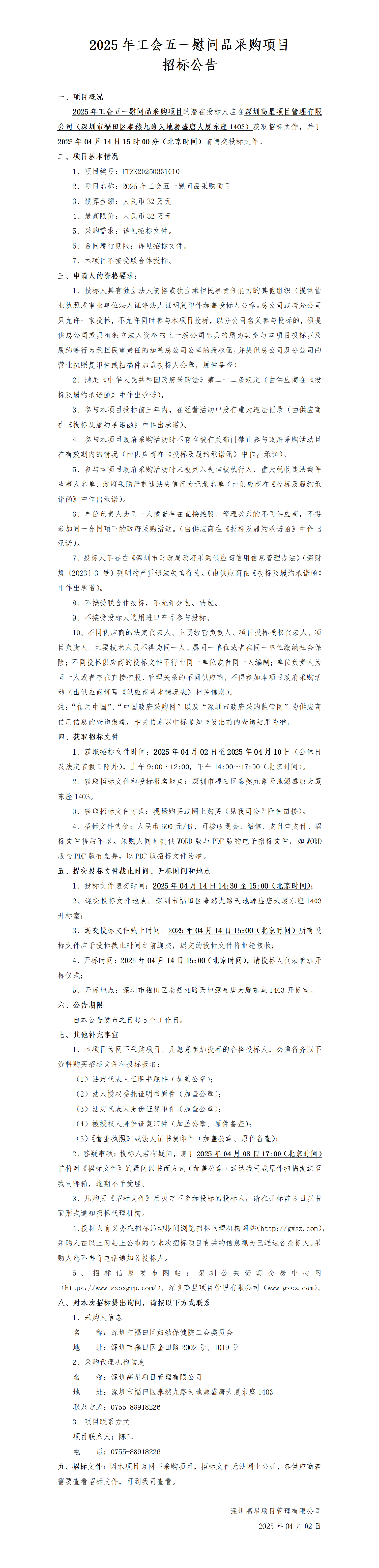 2025年工会五一慰问品采购项目招标公告