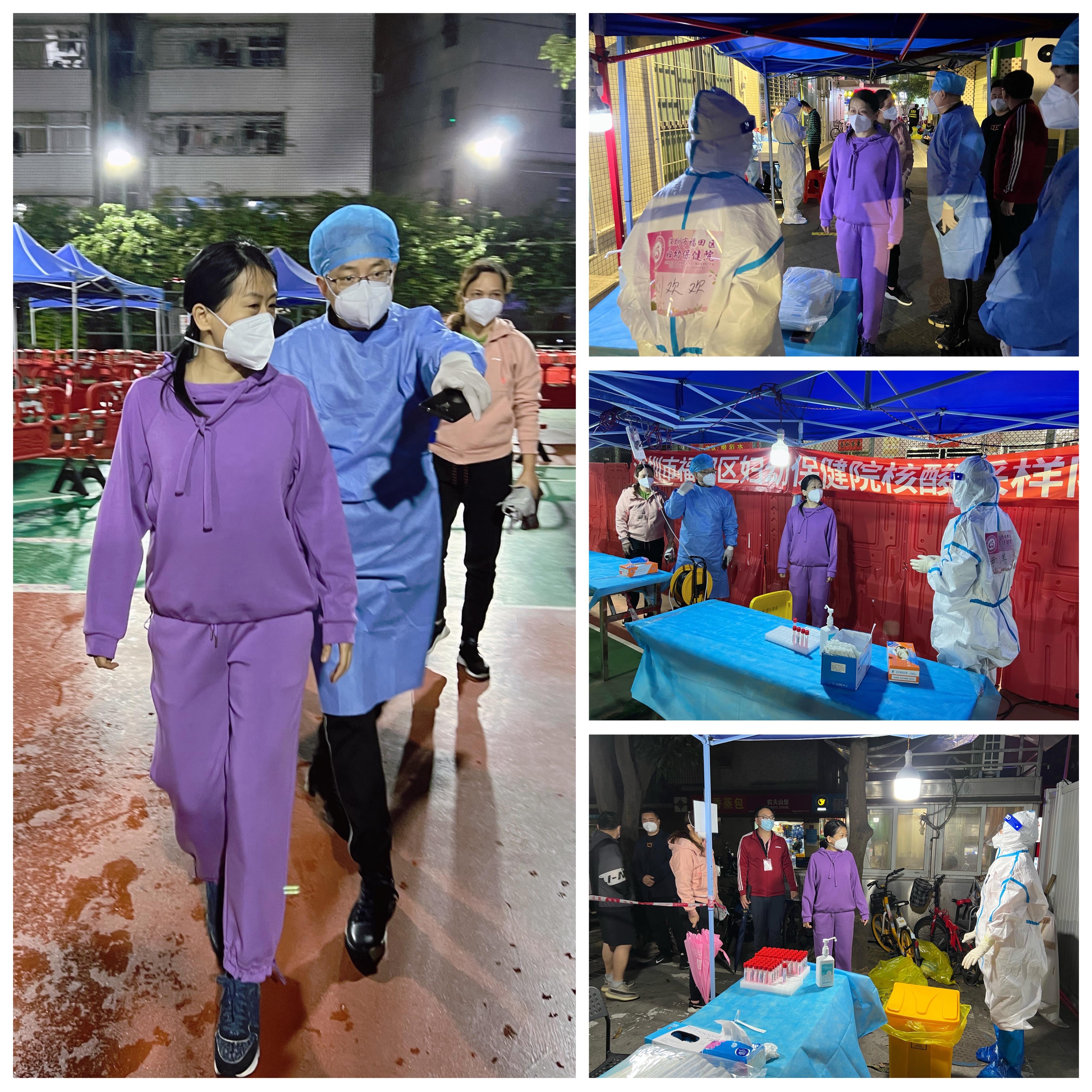 今晚福保街道开启6小时全员大规模核酸检测实战演练。晚上九点,气温骤降,伴随风夹雨,张烨院长率相关职能科室主任到采样点巡查,详细了解采样点演练情况、完成率及实际困难,同时嘱咐一线工作人员注意天气变化,防寒保暖,做好防护,高效安全完成此次演练任务。