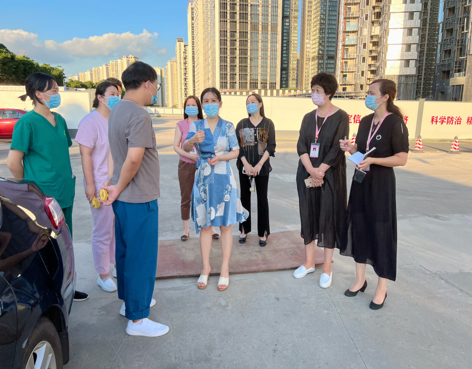 6月28日,持续高温,条件简陋,给福安之家健康驿站医务人员带来巨大身心挑战。接到反馈,张烨院长第一时间率队到福安之家,看望慰问一线医务人员,为他们加油打气。同时与驿站总指挥、街道领导协调,在艰苦条件下保障医务人员安危及工作效率等问题,配置代步变瓶车、配备降温物资及营养品等,为防疫、维稳工作送上定心剂。