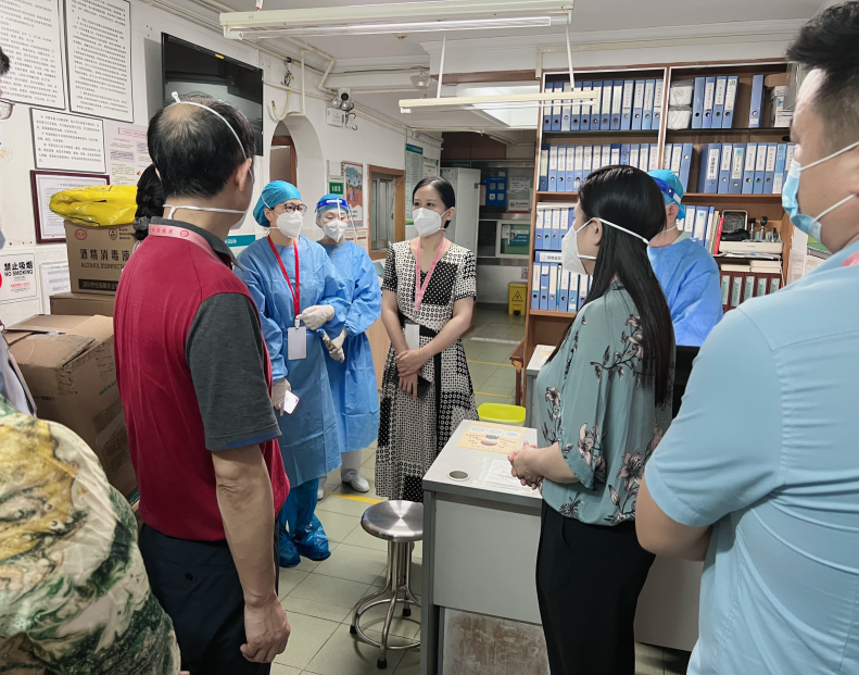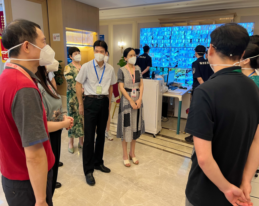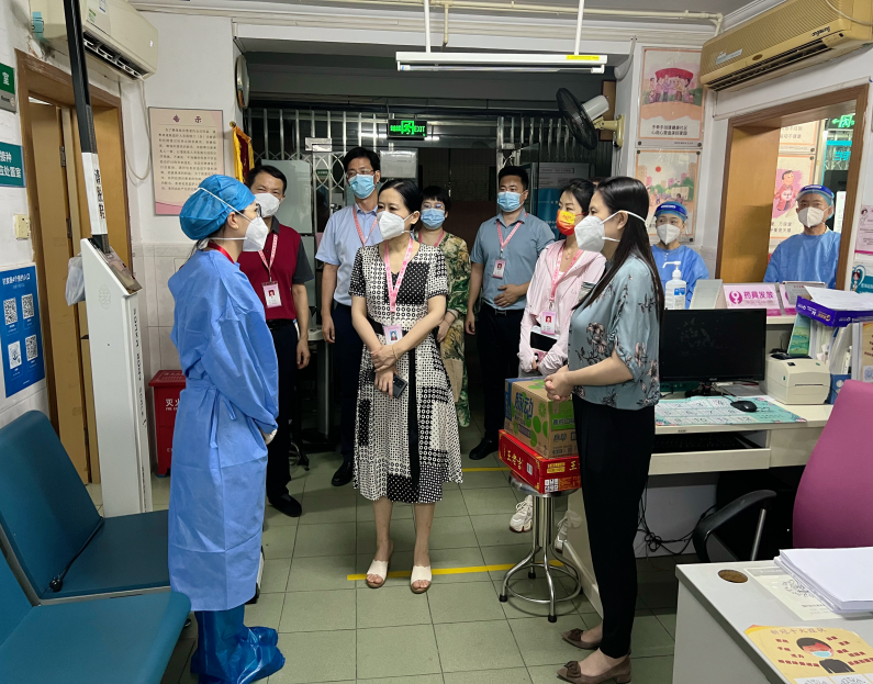 6月29日晚上八点,张烨院长率队,李志勇副院长、肖敏副院长及相关职能科室主任前往我院岗厦社区文山社康中心看望一线医务人员,详细了解文山社康“三区”医疗保障、医疗转运及社区三人组工作运行情况,并解决社康办公电脑及通讯手机配备和后勤保障等困难,要求大家打起十二分精神,守住社康大本营同时,出色完成上级交付的抗疫任务。随后,张烨院长一行到福华健康驿站巡查慰问,了解隔离新政策执行情况及困难,同时强调要科学有序高效执行新政策,加强院感防控,确保各项工作安全平稳开展。