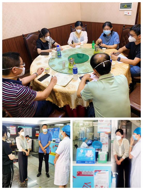 7月17日上午,区妇保院领导班子接到"0717”疫情防控任务后,第一时间赴现场,靠前指挥。下午一点,班子现场召开紧急调度会,确定“0717”丽港湾专项工作现场指挥部人员架构、前线医疗服务指挥专班。会上张烨院长强调,目前全院停止休假,无条件服从战区调度,全力以赴确保防疫物资、医疗保障服务、核酸采样等快速到位,时刻严守院感防线。会后,张烨院长率队前往口岸社康巡查,详细了解口岸社康“三区”医疗保障、感染防控等情况,叮嘱大家注意身体、防止中暑,守住社康大本营同时,出色完成上级交付的抗疫任务。
