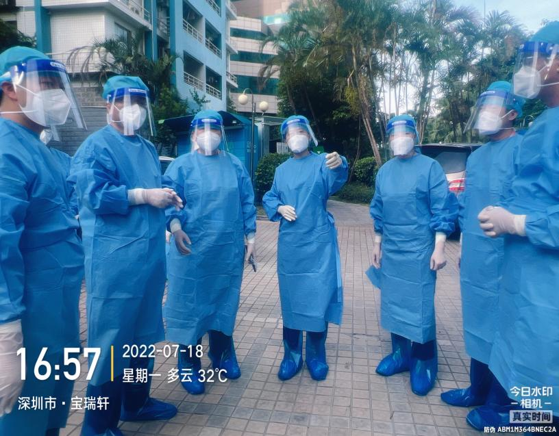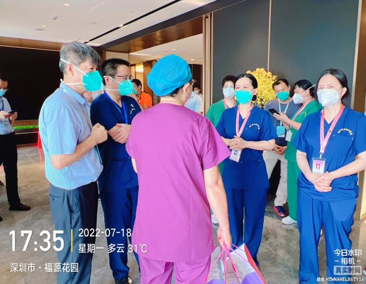 7月18日下午,院领导班子带领党办、院办、医教科、护理部及院感办等科室负责人前往丽港湾及福源花园疫情防控指挥部,为辛苦奋战在一线防疫人员送去一批由张烨博士后针对酷热潮湿工作环境下身体情况亲自调制的中药代茶饮,分别为睡眠安神“宁神甜梦茶”、健脾胃去湿疹湿毒“除湿清暑茶”、补虚养气血“益气补血茶”,为高温酷暑下一线人员身心健康注入中医药防控力量。并现场与福保街道办领导协商解决代步电瓶车等后勤保障困难。随后,院领导班子进入丽港湾三区,现场对安保人员和保洁消杀人员进行感控指导,进入一脱二脱区及医疗废物收集点公共区域进行感控督导,对医疗物资存放、医疗垃圾转运等工作作出进一步强调。叮嘱一线医务人员做好自身防护,有困难要主动及时提出,医院将为大家提供最有力最坚实的后盾。