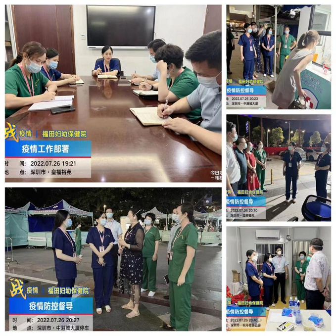 7月26日晚上,张烨院长组织召开疫情防控例会,按照疫情新形势梳理调整防疫工作思路,对福保社区部分战区降级后防疫工作及人员调配作出新的部署;会后,张烨院长率肖敏副院长及相关职能科室主任前往红树福苑、中港城等采样点巡查督导,强调各采样点要加强管理协调,高效落实督导后整改工作。随后,前往天健阳光华苑指挥部,了解目前新设一脱区二脱区搭建情况,强调物资储备、人员调配、入户采样、感控督导等工作,要求务必严守感染防控底线,全力以赴赢取这场疫情防控硬仗。