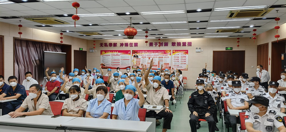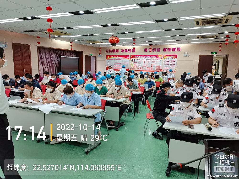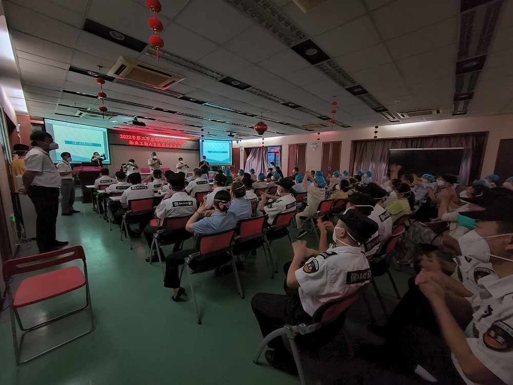 2022年10月14日,福田区妇幼保健院举办物业工勤人员院感及疫情防控培训班,全院保洁员、消毒员、医疗废物专管员、食堂、安保人员、救护车和转运司机共80多人参加培训。