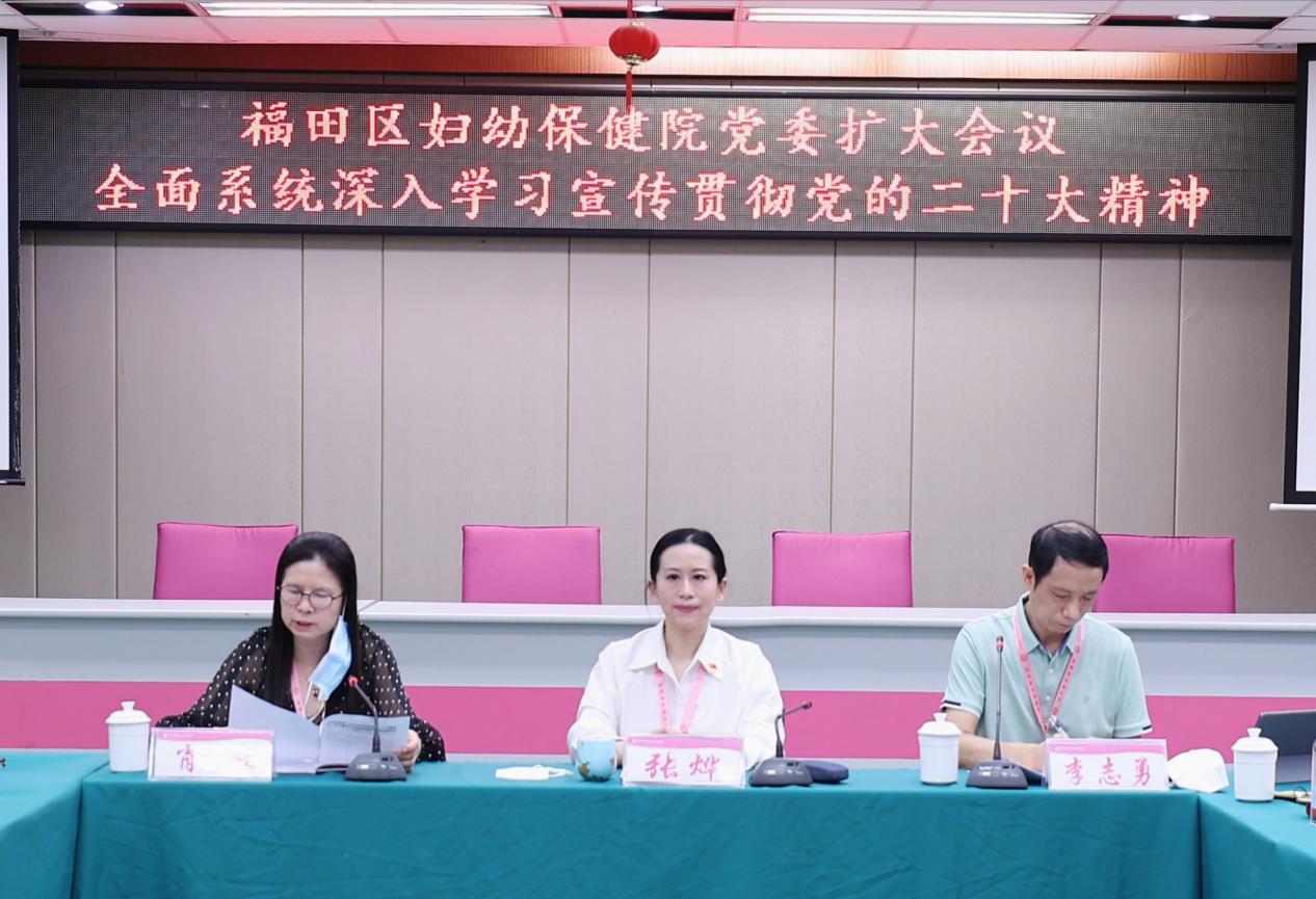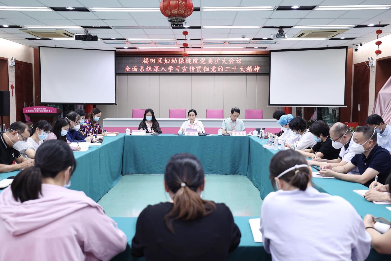 2022年10月31日,福田区妇幼保健院党委召开党委扩大会议深入学习贯彻党的二十大精神。医院党委领导班子,各党支部书记、支部委员等30余人参加会议。
