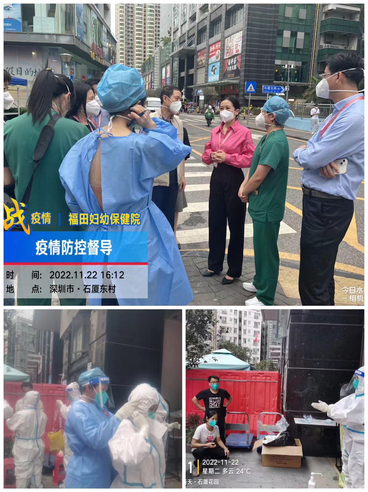 11月22日下午,张烨院长带队前往福保街道石厦花园疫情防控前线巡查指导,详细了解战区三区搭建、人员调配、采样安排、物资配送及院感督导等落实情况,对流程优化、标本转运及核酸检测作出进一步强调,要求各环节要无缝对接,确保标本转运迅速及时、核酸检测提质增效,感控督导严格到位,圆满完成此次疫情防控任务。随后,张烨院长详细了解福安之家今日重启情况,重点强调医院人员调配及医疗保障工作。