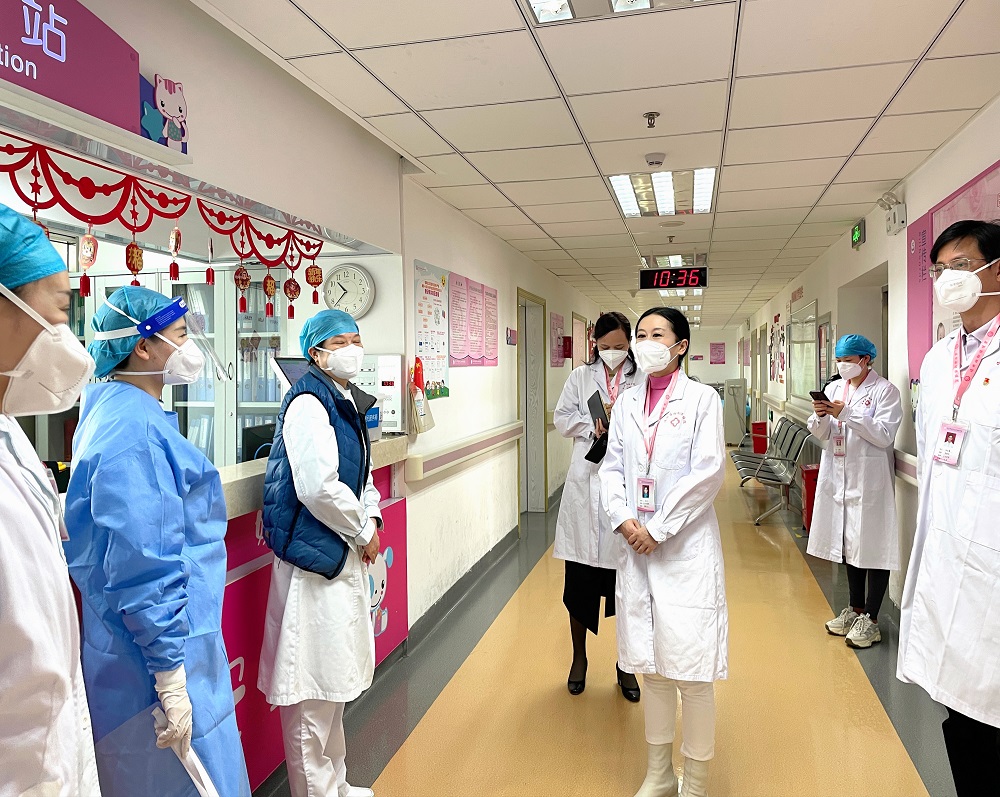 12月27日,张烨书记带队,分别到医院住院大楼、门诊部及采样点巡查督导,了解住院病区、发热诊室及核酸采样点运行情况及存在问题,同时看望慰问在岗值班人员。张烨书记充分肯定了大家主动担当、勇往直前的大无畏精神。要求大家要做好自身防护,有困难及时提出。并强调,持续加大医务人员关怀力度,优化发热诊室就诊流程,压实孕产妇儿童救治责任主体,加快推进各项医疗救治项目方案实施等,全力以赴做好辖区孕产妇儿童健康守门人。