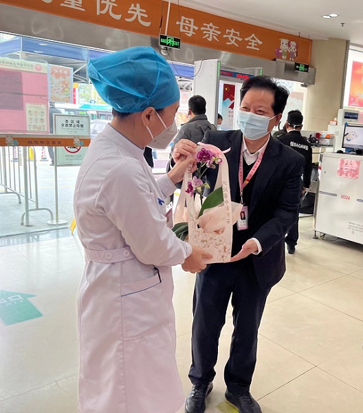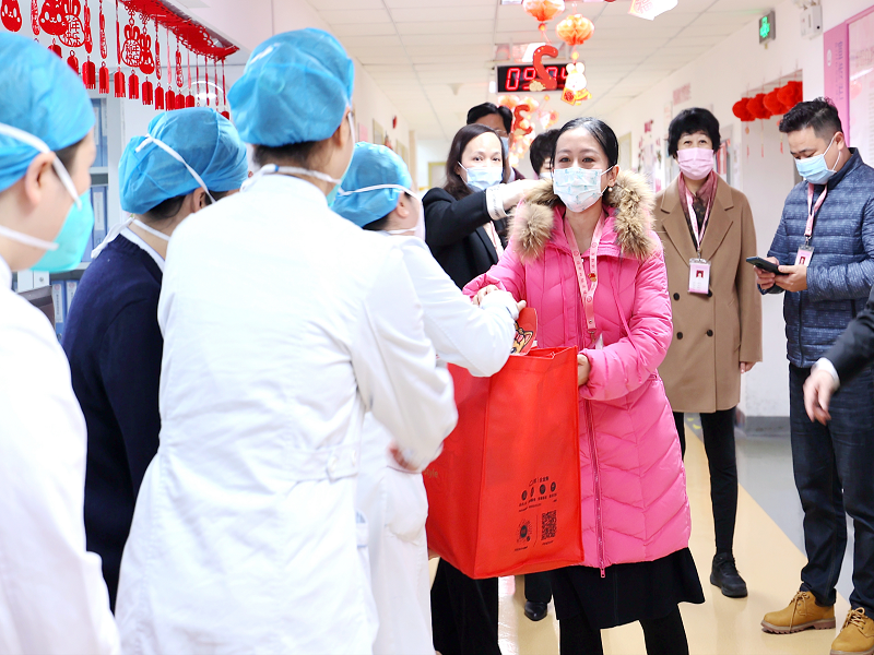 虎啸九州展雄姿,玉兔携春又迎新。1月18日上午,张烨书记、夏志华院长带领相关职能科室负责人到医院门诊部、住院部及社康中心慰问,看望坚守在工作岗位上的一线医务人员,送去新春的祝福,送上慰问品及花篮,对一年来大家履职尽责、奋力实干、奋勇争先,为疫情防控、医疗救治、医院发展及妇幼事业作出的贡献表示崇高的敬意和衷心的感谢。
