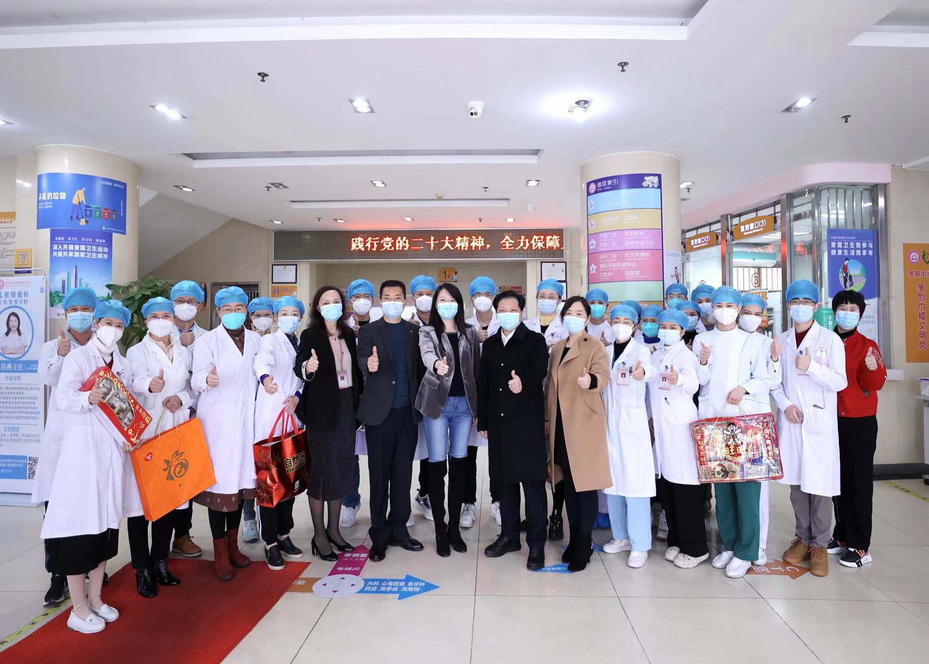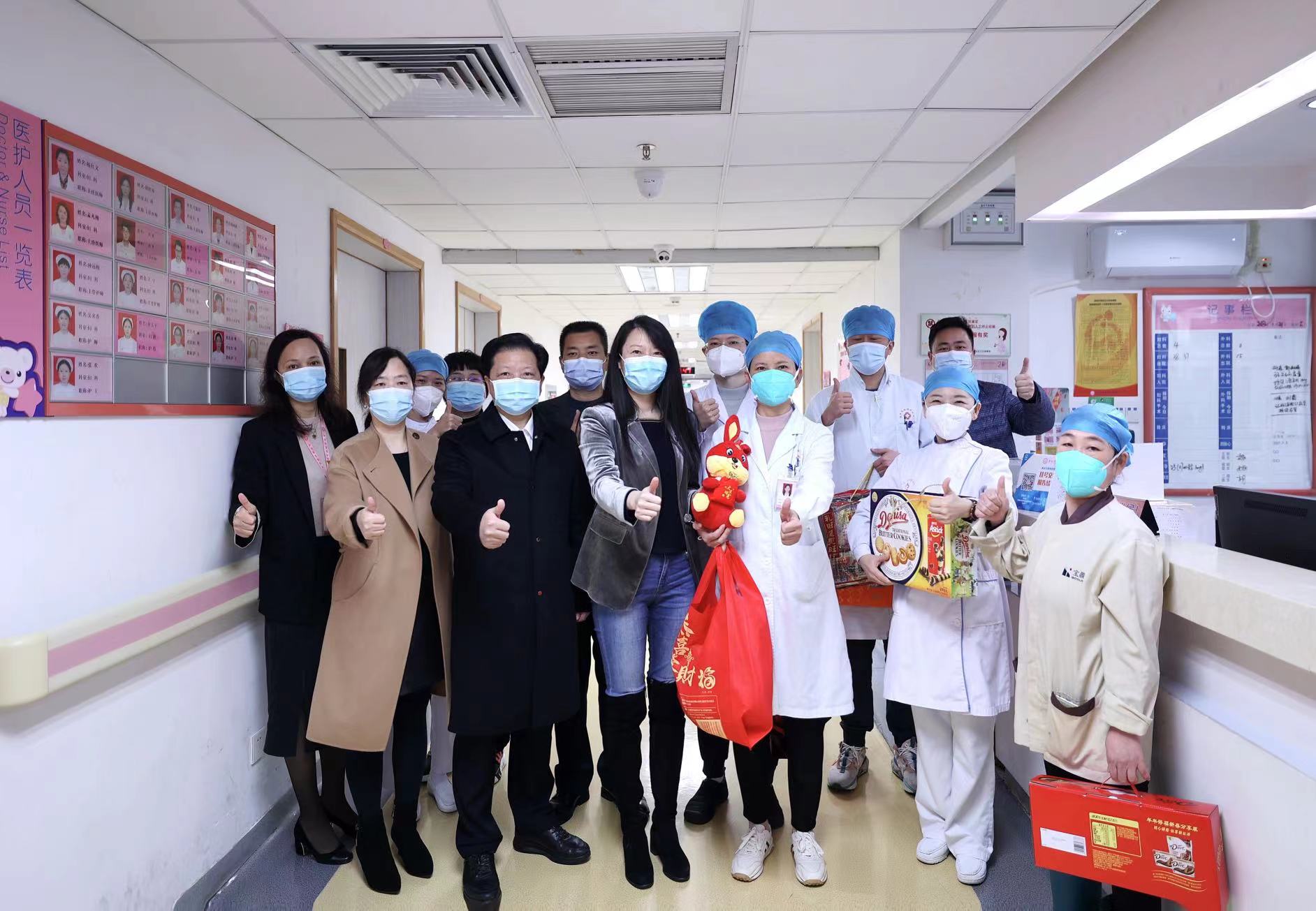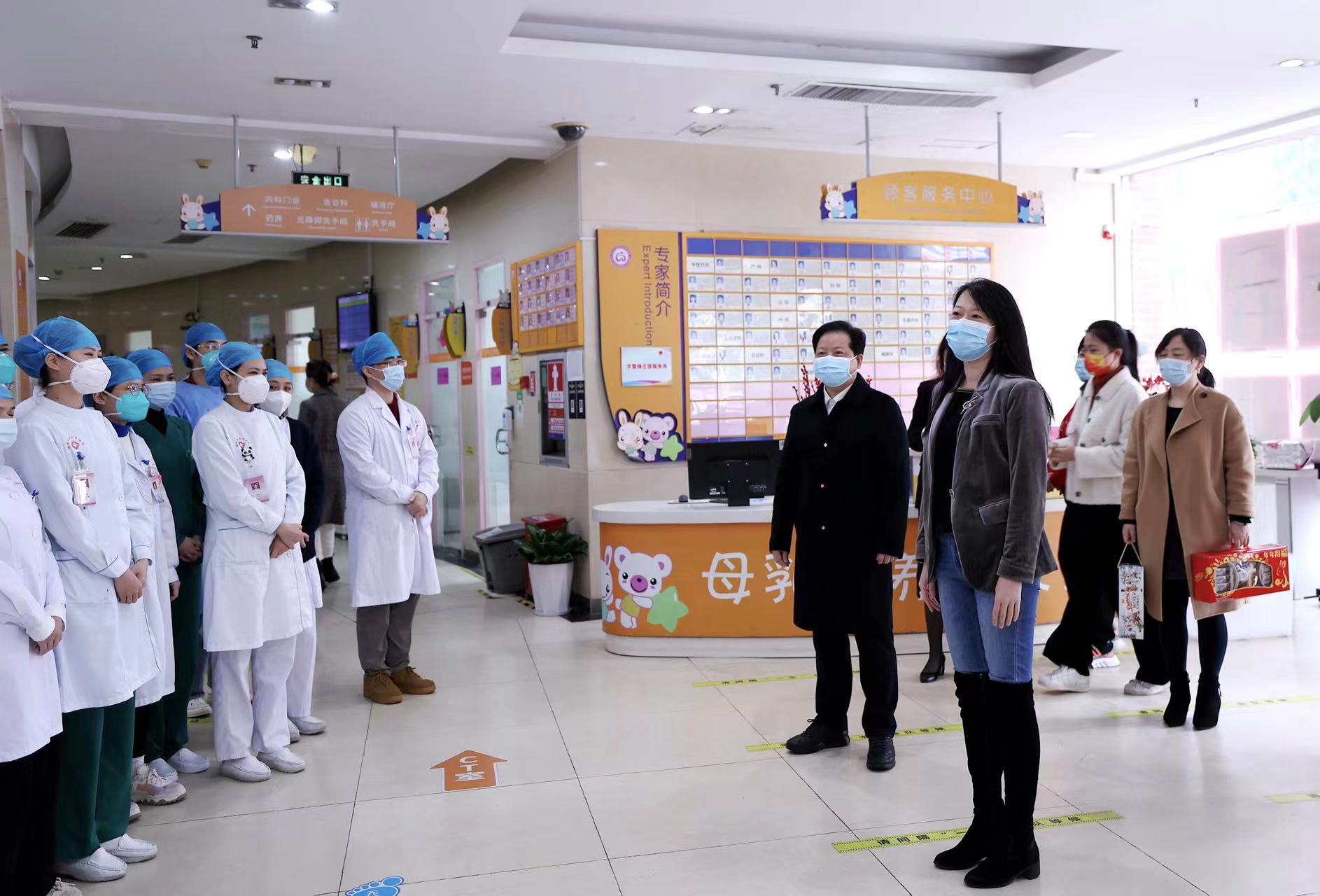 新春慰问送关怀, 岁寒情深暖人心。1月21日(大年三十)上午,区委卫生工委副书记、纪工委书记李杰带领公卫科张海燕科长与爱卫办薛永超科长一行到我院进行新春走访慰问活动,为奋斗在一线的医务人员带来新春的祝福。对医务人员坚守岗位、履职尽责,为人民健康工作的辛勤付出表示崇高的敬意和感谢。在夏志华院长及相关科室负责人陪同下,李杰书记一行先后来到门诊部、住院病区看望在岗的医务人员,与科室医护人员进行亲切交谈。李杰书记表示,过去的一年,医院全体医务人员不畏艰险、挺身而出,为辖区人民身体健康和生命安全贡献了福田妇幼人力量。大年除夕,大家仍然奋战在为群众健康保驾护航的最前线,给人民群众撑起了健康“保护伞”,守牢了“生命线”,为守护辖区妇幼健康发挥了积极的作用,同时希望他们劳逸结合,多陪陪家人,度过一个欢乐祥和的春节。新的一年以更饱满的工作热情和严谨的态度,全力以赴守护辖区妇幼健康。