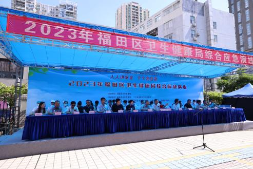 2023年6月29日下午,由福田区卫生健康局主办、福田区妇幼保健院承办的2023年福田区卫生健康系统突发安全事故综合应急演练在福田区妇保院举行。区卫健局副局长付卫明,区应急局副局长张志云、区消防救援大队、区公安分局、交警大队相关领导及区属医疗卫生单位11家单位的领导和负责人参加观摩。活动围绕“1+1+3”模式,通过对闯入人员持刀犯案、院区意外火灾的情景模拟,开展信息报送、指挥部开设、应急处置、医疗救护、善后处置等环节的现场演练,活动取得圆满成功。