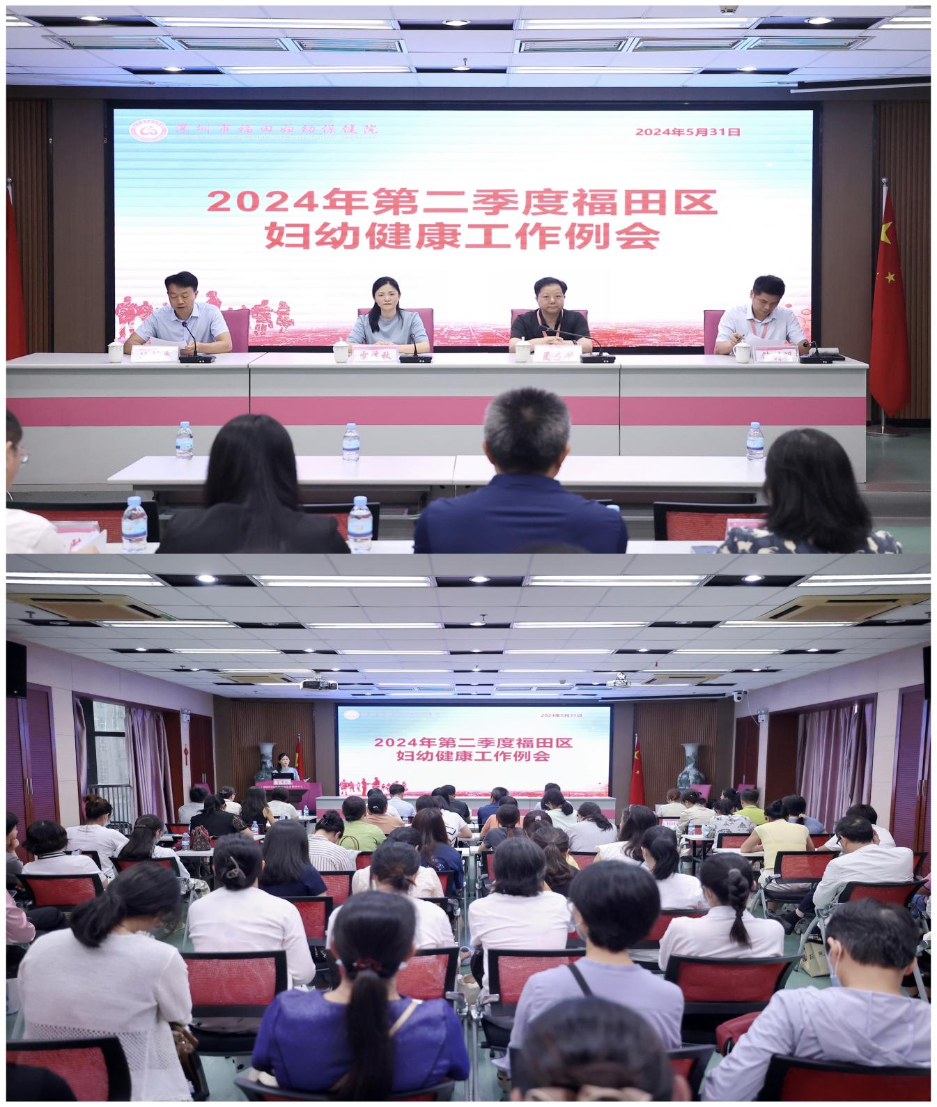 2024年5月31日,2024年第二季度福田区妇幼健康工作例会在福田区妇幼保健院召开,福田区区卫健局三级调研员雷泽秋及家妇科科长陈剑平、区妇幼保健院院长夏志华、分管院长钟剑明及职能业务部门负责人、辖区各助产机构分管院长、防保科、妇产科主任及社康妇幼人员共95人参加会议。